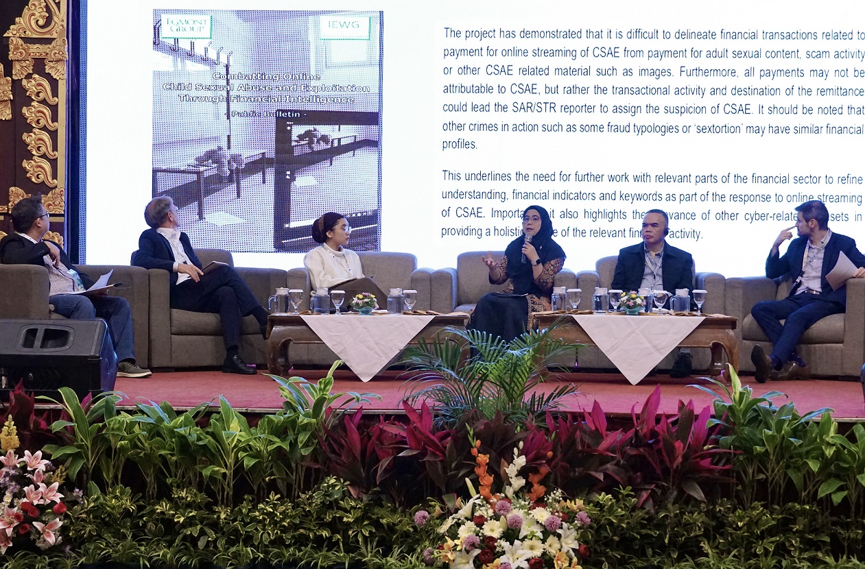 Dalam acara ini, Direktur Strategi dan Kerja Sama Internasional PPATK, Diana Soraya Noor, menjadi salah satu pembicara utama dalam sesi pleno. Ia membawakan materi dengan tema praktik mendeteksi dan melaporkan dugaan transaksi terkait eksploitasi seksual anak di Indonesia. Ia juga menjelaskan mengenai berbagai studi kasus, temuan red flag transaksi yang terkait dengan eksploitasi seksual anak, hingga tantangan dan terobosan yang kini sedang dilakukan PPATK.