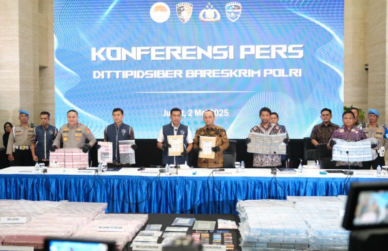 Jakarta — Kepala Pusat Pelaporan dan Analisis Transaksi Keuangan (PPATK), Ivan Yustiavandana bersama Kabareskrim Polri Komisaris Jenderal (Komjen) Pol. Wahyu Widada menggelar kegiatan Press Release Perkembangan Penanganan Laporan Hasil Analisis (LHA) PPATK dan Pengungkapan Website Judi Online H55 HIWIN. Acara ini diselenggarakan di Markas Besar Kepolisian Republik Indonesia (Mabes Polri), Jumat 02 Mei 2025.